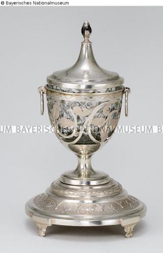 restituiert Fundmeldung Zuckerdose mit Glaseinsatz auf Sockel Hersteller/Künstler:in Temmler, Georg Christian Friedrich Objektart Gefäß Material / TechnikGlas ; Metall (Silber)Lost Art-ID578176