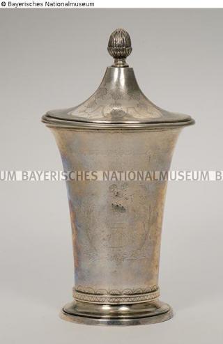 restituiert Fundmeldung Deckelbecher Hersteller/Künstler:in Bruglocher, Johann Jakob Objektart Gefäß Material / TechnikMetall (Silber) / getrieben ; gegossen ; graviert ; punziert...Lost Art-ID578268