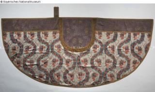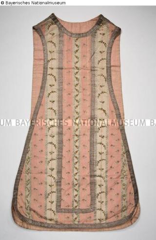 Fundmeldung Kasel aus rosa und weiß gestreiftem Seidenrips Hersteller/Künstler:in Unbekannt Objektart Bekleidung Material / TechnikTextil (Seide) rosa, weiß ; Textil (Silberlahn) ; Metall...Lost Art-ID580390
