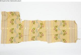 Fundmeldung Gelb gestreifter Seidentaft Hersteller/Künstler:in Unbekannt Objektart Gebrauchs- / Raumtextilie Material / TechnikTextil (Seide) gelb ; Textil (Taft) / gewebt ; gemustertLost Art-ID580360