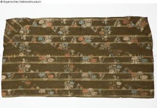 Fundmeldung Brauner Seidendamast mit broschierten bunten Blumen Hersteller/Künstler:in Unbekannt Objektart Gebrauchs- / Raumtextilie Material / TechnikTextil (Seide) braun, weiß ; Metall (Silberfaden) ; Textil...Lost Art-ID580355