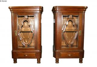 Fundmeldung Schränke (Paar) Hersteller/Künstler:in Unbekannt Objektart Möbel Material / TechnikHolz (Eiche) ; Glas ; Metall / geschreinertLost Art-ID595851