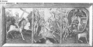 Suchmeldung Raub und Wiedereroberung des wahren Kreuzes Christi Hersteller/Künstler:in Unbekannt (Deutsch / Wismar)) Objektart Malerei Material / TechnikTempera [?] ; Holz (Eiche) / gemaltLost Art-ID214524