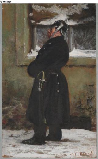 restituiert Suchmeldung Ein Schutzmann im Winter Hersteller/Künstler:in Menzel, Adolph Objektart Malerei Material / TechnikGouache / gemaltLost Art-ID522225