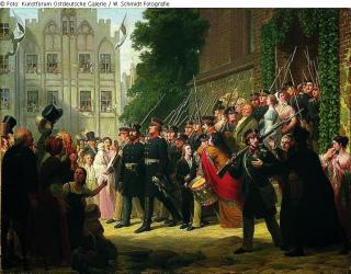 Fundmeldung Auszug der ostpreußischen Landwehr ins Feld 1813 Hersteller/Künstler:in Graef, Gustav Objektart Gemälde Material / TechnikÖl ; Leinwand / gemaltLost Art-ID592583