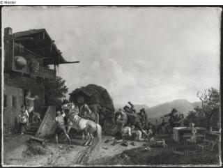 Fundmeldung Bauernpaar vor der Schenke Hersteller/Künstler:in Quaglio, Lorenzo (Umkreis) Objektart Gemälde Material / TechnikÖl ; Holz (Eiche) / gemaltLost Art-ID519137