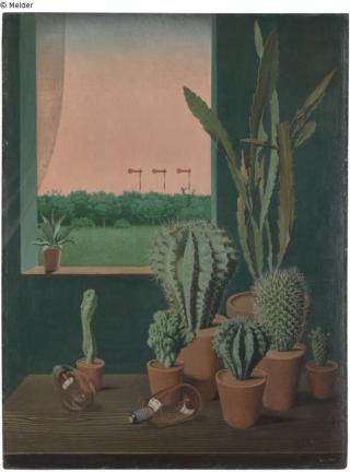 Fundmeldung Kakteen und Semaphore Hersteller/Künstler:in Scholz, Georg Objektart Gemälde Material / TechnikÖl ; Hartfaserplatte / gemaltLost Art-ID598762