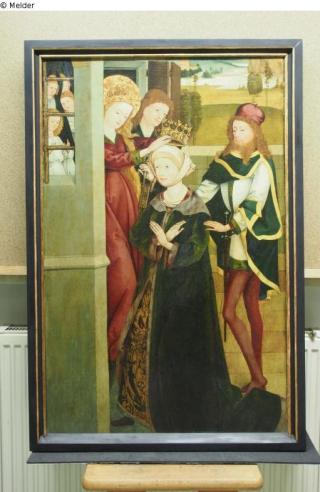 Fundmeldung Katharinenlegende: Enthauptung der hl. Katharina Tafelbild; Altarflügel Hersteller/Künstler:in Meister des Kaufbeurer Sakristeischrankes, Kaufbeuren Objektart Gemälde Material / TechnikÖl ; Holz / gemaltLost Art-ID598738