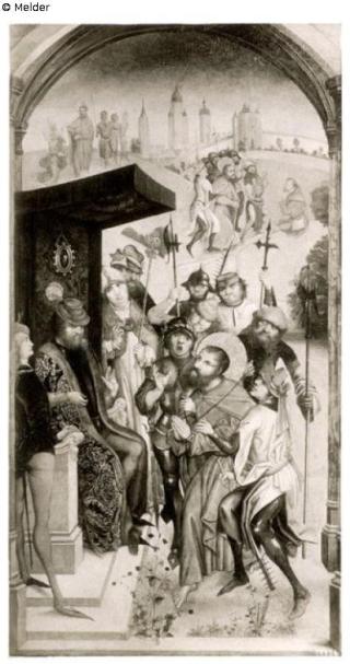 Suchmeldung Zwei Tafeln Legende der hl. Jacobus Hersteller/Künstler:in Meister von St. Gudele / Master of the View of Saint Gudula Objektart Gemälde Material / TechnikÖl / gemaltLost Art-ID626346