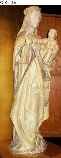 Kalkstein ; Metall (Gold) / bemalt ; vergoldet
