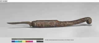 restituiert Fundmeldung Buchbindermesser Hersteller/Künstler:in Unbekannt Objektart Werkzeug Material / TechnikMetall (Eisen) ; Holz (Laubholz) / geschmiedet ; geschnitztLost Art-ID577845