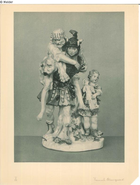 Vgl. Katharina Christiane Herzog, Mythologische Kleinplastik in Meißener Porzellan 1710-1775. Inaugural-Dissertation zur Erlangung der Doktorwürde der Philosophischen Fakultät der Universität Passau. Zürich, Juni 2012, S. 134-136, Kat.-Nr. 132, Tafel 67. Dort weitere Literatur und Vergleichstücke.
