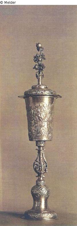 Reliefarbeit; Photo: Martin Gerlach, Wien 1938, Nr. 32; beschrieben in: Kunstzeitschrift “Belvedere” : 1928/29, 9. Jg. (Figürliches Silbergerät), 1930, 10. Jg. (Elfenbein- und Silberkannen), 1931, 11. Jg. (Silberpokale und Silberschüsseln); Sophie Lillie “Was einmal war”, Wien 2003, S. 839 ff.