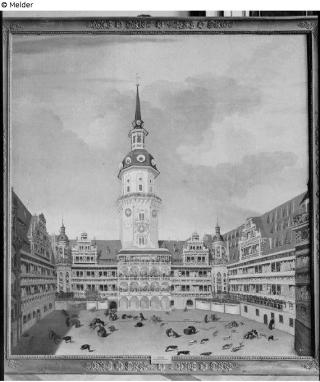 Bestandteil des Auseinandersetzungsvertrages des Freistaates Sachsen und dem vormaligen Königshaus von 1924, wird unter „Schloß I. Et. Steingang“, „1 Ölgemälde Großer Schloßhof VI.66.”