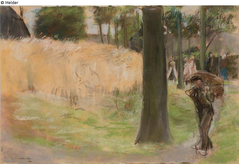 Sammlung Eduard Fuchs bis 1933; 25.10.1933 Beschlagnahmung durch die Gestapo; zwangsweiser Verkauf (Zahlung Reichsfluchtsteuer) 1937 durch seine Tochter Gertraud Fuchs: Versteigerung Rudolph Lepke, Katalog 2114, 16. und 17.06.1937, Nr. 89 („Getreidefeld am Wald, vorn ein Holzträger. Goldrahmen“); Erwerb durch Kunsthändler Hans Bammann, Düsseldorf (laut annotiertem Katalog der RKD Den Haag - Niederländisches Institut für Kunstgeschichte) für 250,- RM (Schätzpreis 210,- RM); Privatsammlung Süddeutschland; 01.06.2001 Kunsthaus Lempertz, Köln (für DM 100.000,- versteigert); im Mai 2019 soll das Pastell bei der Villa Grisebach Berlin versteigert werden - derzeit finden Restitutionsverhandlungen statt