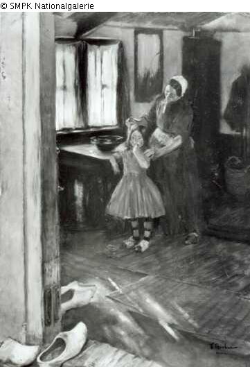 Tafelmalerei: Bild: Körperpflege, Hygiene & Frisurenmode, Haarmode & Mädchen (Kind zwischen Kleinkindalter und Jugend) & Hausinneres & der Morgen