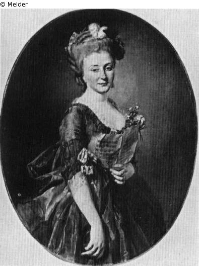 Tafelmalerei: Bild: Porträt einer anonymen weiblichen historischen Person (allein) & Notenschrift; Porträt; weiblich; historische Person (anonym) & Musik; schreiben; Bez. rechts unten im Grund: L.R. Trinquesse. fecit. 1774.; Signatur: Trinquesse. fecit. 1774.; Maße: 98 x 77 cm