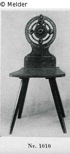 Durchbrochene Rücklehnen mit Schuppenfries, Schleifen und Rosetten. Schöner alter Nußbaumton