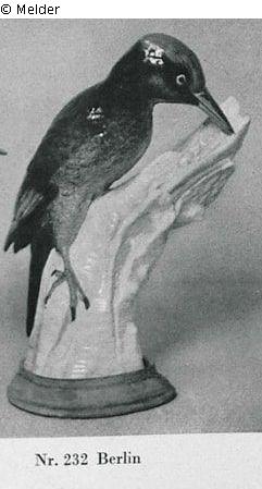 Gefieder Blauschwarz vorherrschend, an den Seiten graubraun. Türkisblaue Stelle auf dem Rücken. Kopf leuchtendrot und hellblau an den Augen. Berlin. Blaues Zepter. Tadellose Erhaltung
