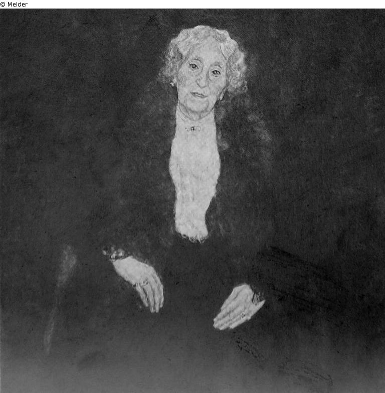 nach Weidinger, Nr. 244: Charlotte Pulitzer, Datierung: 1917, Format: 98 x 98 cm, Technik: Öl auf Leinwand, Bezeichnung: M. r.: "GUSTAV / KLIMT", Besitz unbekannt, Provenienz: August und Serena Lederer, Wien (vom Künstler erw.; bis 1938)