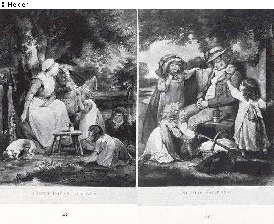 Ein Paar Gegenstücke: Vor alten Leuten spielende Kinder. Gestochen von G. Grozer u. W. Dickinson. London, W. Dickinson. Hoch-Folio.