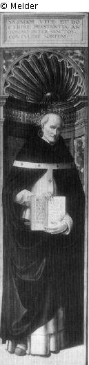 Suchmeldung | Einzelobjekt Der heilige Antonius -Tafel des ehemaligen Hochaltars von Santa Maria Novella in Florenz Lost Art-ID19417 Vorherige Weiter Der heilige Anthonius Hersteller/Künstler:in Ghirlandaio, Domenico Geburt 1449, Florenz Tod 1491.01.11, Florenz TitelDer heilige Antonius -Tafel des ehemaligen Hochaltars von Santa Maria Novella in Florenz Datierung1494 (um)ObjektartRetabelObjektgruppeAltarMaterial / TechnikHolz (Pappel) Höhe 206,00 cm Breite 55,00 cm Inventarnummer76Beschreibung Malerei: Tafelmalerei: Altarflügel; Weiterlesen Weniger anzeigen BestandGemäldegalerie im ehemaligen Kaiser-Friedrich-Museum (Bodemuseum)Provenienz (frühere) Verwaltung: Berlin; (öffentliche) Sammlung; Staatliche Museen; Abteilung: Gemäldegalerie; Inv. Nr. 76 Weiterlesen Weniger anzeigen Veröffentlicht seit2001 Kontakt Stiftung Preußischer Kulturbesitz Staatliche Museen zu Berlin Gemäldegalerie Matthäikirchplatz 10785 Berlin Deutschland Tel+49 (0) 30 266 42 4001Fax+49 (0) 30 266 42 4003E-Mailgg@smb.spk-berlin.deHomepagehttp://www.smb.spk-berlin.de Ansprechpartner:in Dr. Neville RowleyPositionKurator für italienische Kunst vor 1500Tel+49 (0) 30 266 42 4006E-Mailn.rowley@smb.spk-berlin.de