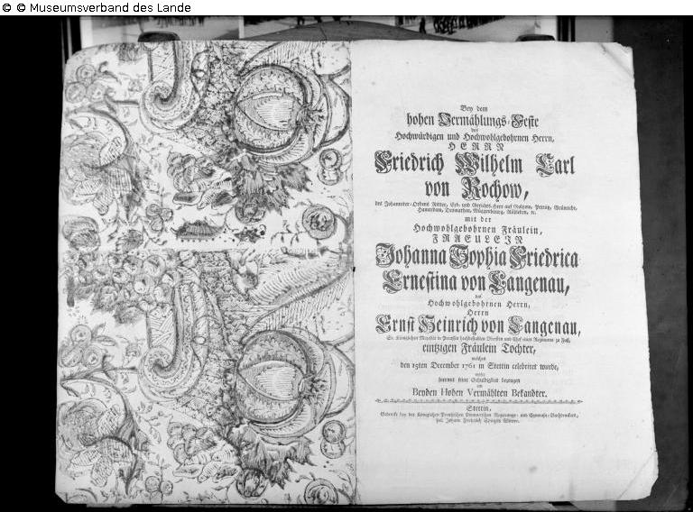Gedruckter Bericht von der Hochzeit von Friedrich Wilhelm Carl von Rochow und Johanna von Langenau in Stettin 1761.