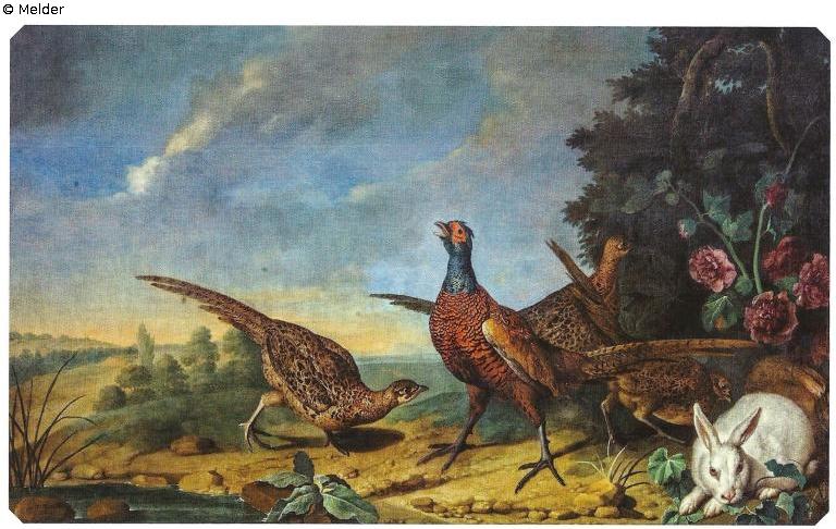 Fasane und ein weisser Hase