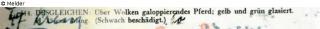 Fuchs-Text zu Tafel 40: „Dachreiter. Über den Wolken galoppierendes Pferd. Gelb und grün glasiert. Höhe 33 cm.“