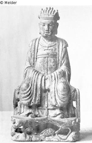 Figur eines Stadthauptmannes (traditionell bez. als Mei Lang-tschung); zu seinen Füßen Schlange und Schildkröte