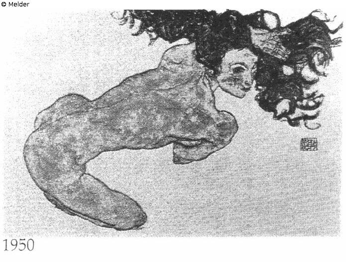 nach Werkverzeichnis Kallir: KD No: 1950; Titel: Frauenakt; Gouache, Bleistift, und schwarze Kreide. Signiert und datiert mitte rechts. 113/8x17 3/4" (29.5 x 45 cm). Private Sammlung.