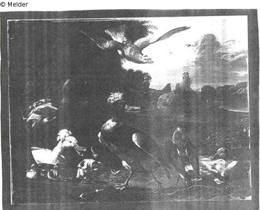 Suchmeldung | Einzelobjekt Geflügel Lost Art-ID297289 Vorherige Weiter Hersteller/Künstler:in Hondekoeter, Melchior de Geburt 1636, Utrecht Tod 1695.04.03, Amsterdam WirkungsortDelft; Den Haag; Amsterdam TitelGeflügelObjektartMalereiObjektgruppeMalereiMaterial / TechnikLeinwand Höhe 76,00 cm Breite 98,00 cm Beschreibung Gemälde: am Zaun bezeichnet M. D. H.Auf der Rückseite mit Namen Johann Stumpf beschrieben Weiterlesen Weniger anzeigen Provenienz Verlust am Auslagerungsort Schloss Schloss Ullersdorf (Glatz) bei Kriegsende 1945. Weiterlesen Weniger anzeigen Veröffentlicht seit2003 Kontakt Kontaktanfragen richten Sie bitte an das Deutsche Zentrum Kulturgutverluste.