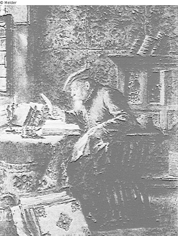 Gelehrter in Renaissance-Interieur, in einem alten Folianten lesend