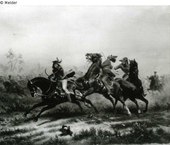 General Murat, im Gefecht bei Liebertwolkwitz am 14. Oktober 1813 vom Dragonerleutnant zur Lippe verfolgt