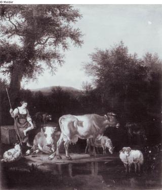 Herderin met vee (Koeien) / Hirtin mit Rindern (Kühen)
