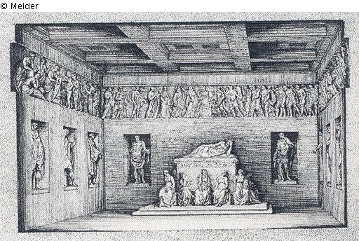 Entwurf zu einem Tempel als Denkmal Friedrichs des Großen (Plastischer Außenschmuck und skulpturale Innenausstattung vermutlich in Zusammenarbeit mit J. G. Schadow); Blatt 2