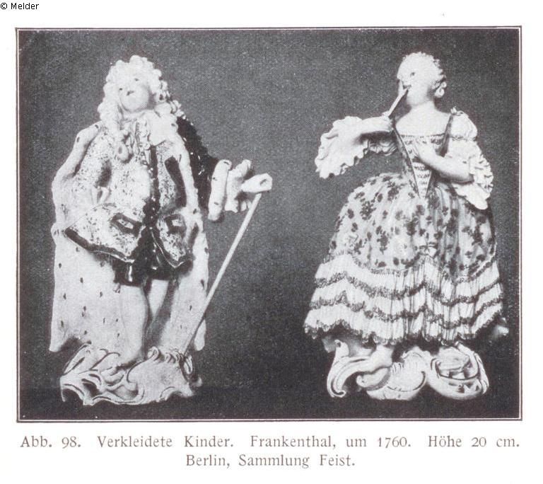 "Figuren aus der französischen Komödie (?), dargestellt durch pausbäckige Kinder"; Quelle: Ludwig Schnorr von Carolsfeld: Porzellan der europäischen Fabriken des 18.Jahrhunderts. Berlin 1920. Abb.98 und S.193;