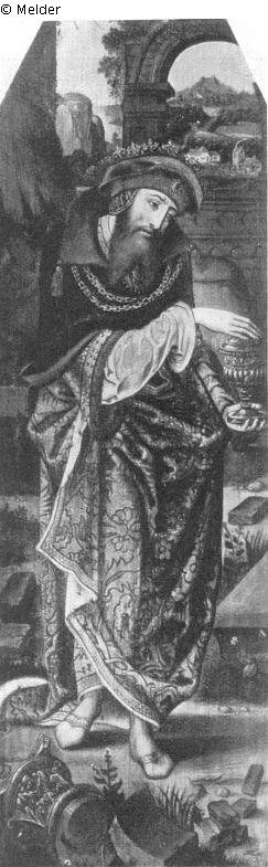 Suchmeldung | Einzelobjekt König mit Deckelpokal und reicher Gewandung aus Anbetungsszene Lost Art-ID314438 Vorherige Weiter Hersteller/Künstler:in Engebrechtsz., Cornelis Geburt 1468, Leiden Tod 1533, Leiden WirkungsortLeiden TitelKönig mit Deckelpokal und reicher Gewandung aus AnbetungsszeneObjektartMalereiObjektgruppeMalereiMaterial / TechnikÖl ; Holz / gemalt Höhe 69,50 cm Breite 36,70 cm Beschreibung König aus einer Anbetung, Stehend mit nach rechts geneigtem Haupt, in reicher Gewandung, einen Deckelpokal in beiden Händen haltend. Im Hintergrund Blick durch eine Säulenarchitektur in bergige Landschaft Weiterlesen Weniger anzeigen Provenienz Auktion H.Lange,Berlin 18./19.11.38, Nr. 156 Weiterlesen Weniger anzeigen Veröffentlicht seit2006 Ansprechpartner:in von Trott zu Solz LammekPositionRechtsanwälte NotarTel+49 (0) 30 59 00 33 0-0E-Mailkanzlei@vontrott-lammek.de