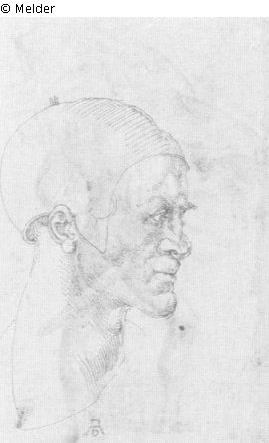 Kopf eines bartlosen Mannes nach rechts