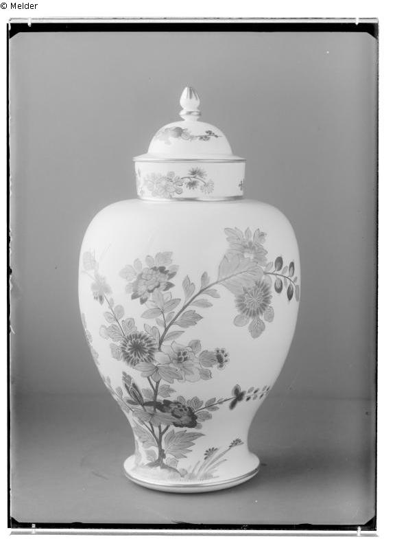 Der auf dem historischen Foto abgebildete Deckel ist erhalten: SKD, Porzellansammlung, Inv.-Nr. PE 842 (HMA-Nr. III 68); Maße: H. 6,2 cm, D. 9,4 cm