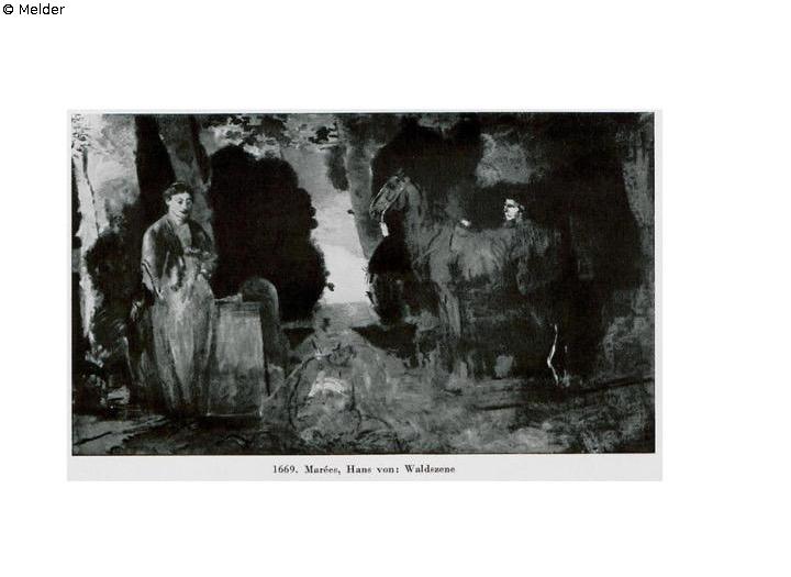 Kunsthaus Zürich, Archiv 2001/002:075, Bl. 60, Verzeichnis der Sammlung Hugo Simon, 29.05.1934 [Liste Zürich 1934]; Kunstmuseum Basel, Archiv, Handakte, Hugo Simon; Gerlach-Laxner, Uta, Hans von Marées. Katalog seiner Gemälde, München 1980, S. 110 Kat.-Nr. 97 'Szene im abendlichen Park', mit Abb.; Feilchenfeldt, Rahel E./Raff, Thomas (Hg.), Ein Fest der Künste. Paul Cassirer. Der Kunsthändler als Verleger, München 2006, S. 356 und S. 361, Anm. 48 'Öl auf Leinwand, 108 x 278 cm'; Mobiliar des Herrn Reichenbach, St. Gallen, aus Zürcher und Waadtländer Privatbesitz, Gemälde alter und neuer Meister, diverser Privatbesitz, Auk. Kat. Luzern, Galerie Fischer, 23.-26. August 1939, Luzern 1939, Los-Nr. 1669, Abb. Tafel 42