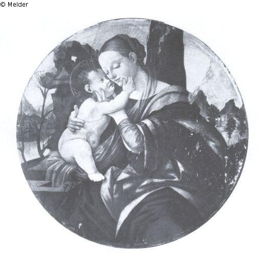 Italienisch (Florenz), früher Fra Filippo Lippi zugeordnet; Tondo: Maria mit Jesuskind auf dem Schoß, im rechten Arm haltend, zwei Kirschen im Vordergrund liegend . Im Hintergrund links eine Schlange an einem Felsen, rechts wird die Kuppel des Doms von Florenz sichtbar; Graf von Ingenheim´sche Bidersammlung, Erbinventar - Gemäldeverzeichnis: Nr. 38, Reisewitz, 1883.