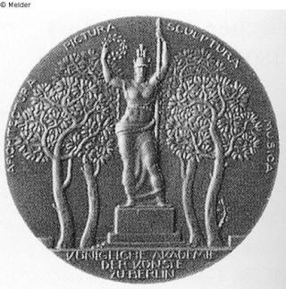 Rs.: Standbild der Pallas Athene, von Bäumen ungeben; Umschrift: ARCHITECTURA PICTURA SCULPTURA MUSICA / KÖNIGLICHE AKADEMIE / DER KÜNSTE ZU BERLIN