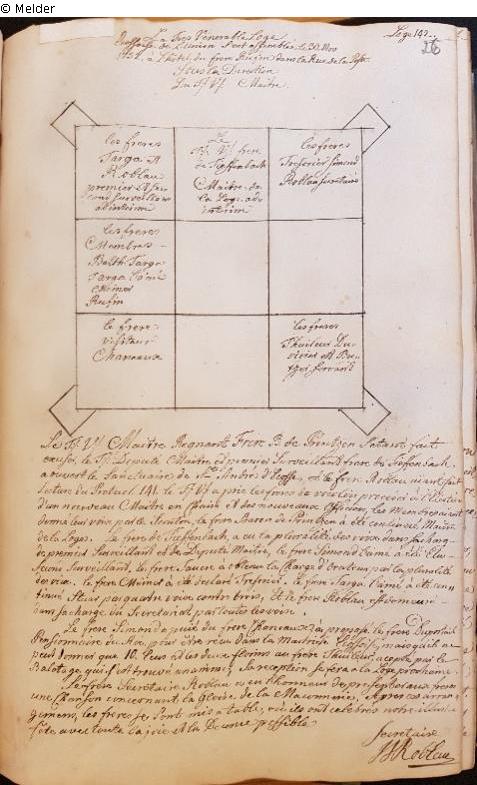 Mehrteiliges handschriftliches Buch mit Protokollen, Mitgliederlisten, Gesetzen und Statuten. In der Regel geführt vom Secretair der Loge Loge Ecossoise de l'Union in Berlin, Bruder J. J. Roblau.