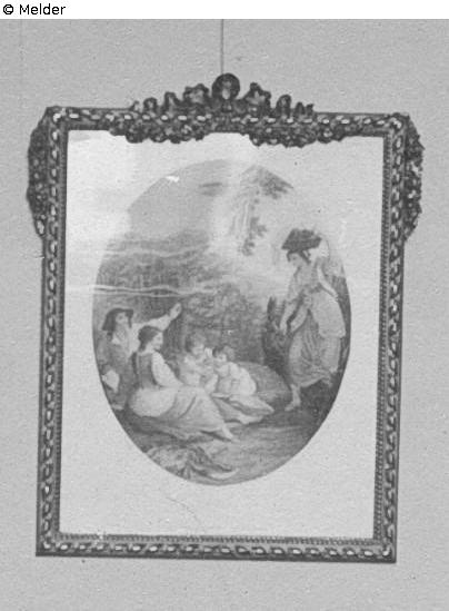 Gerahmter, farbiger Stich, alt-englisch; Stecher: Bartolozzi, nach einem Werk von William Hamilton; Anschaffungsjahr 1915