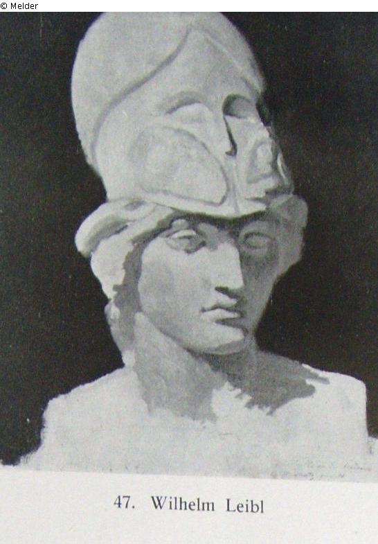 Union 1938: Athenakopf aus Gips. Öl auf Papier, das auf Pappe geklebt ist. H. 56 cm, Br. 45 cm. Entstehungszeit: 1864/65. Der Hintergrund des Bildes wurde von dem Maler A. Splitgerber begonnen. Leibl malte den Kopf in einer Mittagspause in der Anschützschule. Rechts unten die nicht von Leibl herrührende Notiz: Von Leibl an der Akademie bei Anschütz gemalt. (Im Leibl-Werk von Emil Waldmann verzeichnet und abgebildet. Seite 146 bzw. Abb. 14.)