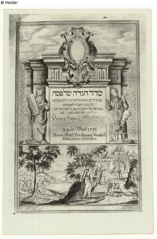 (Eintrag im Inventarbuch des Jüdischen Museums Wien vor 1938). Illustrierte Pessach-Haggada.