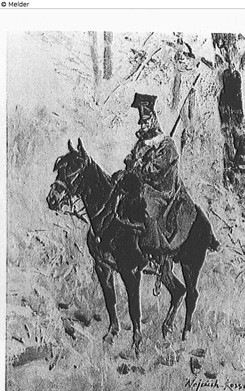Suchmeldung | Einzelobjekt Polnischer Ulan auf Posten in einer Winterlandschaft Lost Art-ID530018 Vorherige Weiter Hersteller/Künstler:in Kossak, Wojciech Geburt 01.01.1857, oder 31.12.1856, Paris (Frankreich) Tod 29.07.1942, Krakau (Polen) WirkungsortParis, Krakau, Washington TitelPolnischer Ulan auf Posten in einer WinterlandschaftObjektartGemäldeObjektgruppeMalereiMaterial / TechnikÖl ; Pappe / gemalt Höhe 48,00 cm Breite 33,00 cm Beschreibung signiert Weiterlesen Weniger anzeigen Provenienz Petschek, Aussig; Union, Berlin 28.-29.5.41, Nr. 104, Käufer: A., Berlin; S., Berlin; Lindenau Museum Altenburg/Thr.;2019 Restitution an die Erben(Auskünfte zu Käufernamen können ggf. durch den Melder erteilt werden) Weiterlesen Weniger anzeigen Status restituiert Veröffentlicht seit11.11.2015 Kontakt Kontaktanfragen richten Sie bitte an das Deutsche Zentrum Kulturgutverluste.