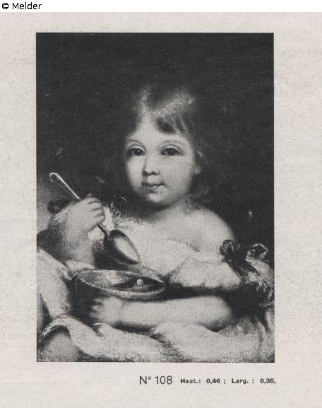 Suchmeldung | Einzelobjekt Porträt eines Kindes Das Mittagessen des Kindes Lost Art-ID622458 Vorherige Weiter Hersteller/Künstler:in Gainsborough, Thomas (Schule von) Geburt (vor) 1727.05.14, Sudbury (Suffolk) Tod 1788.08.02, London TitelPorträt eines KindesZusatztitelDas Mittagessen des Kindes Datierung1701/1800ObjektartGemäldeObjektgruppeMalereiMaterial / TechnikLeinwand / gemalt Höhe 46,00 cm Breite 35,00 cm Inventarnummer108Beschreibung Kind mit Schüssel und Löffel Weiterlesen Weniger anzeigen Sammlung Gemälde- und Grafiksammlung von Anna und John JafféProvenienz Sammlung Anna und John Jaffé; versteigert an CHARTIAU, 12/07/1943, n°108; Verbleib unbekannt Weiterlesen Weniger anzeigen Literatur / Quelle Musée Masséna exhibition "The English on the Riviera from the 18th century to the present day" 1934 Weiterlesen Weniger anzeigen Veröffentlicht seit24.06.2024 Ansprechpartner:in Alain MonteagleE-Mailalainmonteagle@gmail.com Ansprechpartner:in Leelou BellangerE-Mailleelou.bellanger@outlook.fr