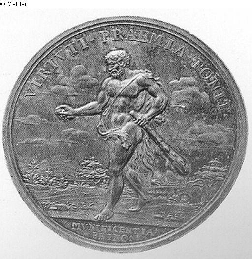 Rs.: Herkules mit der Keule und den Äpfeln der Hesperiden; Umschrift: VIRTVTI · PRAEMIA · PONIT· / MVNIFICENTIA PRINC: (Signatur) R. F.